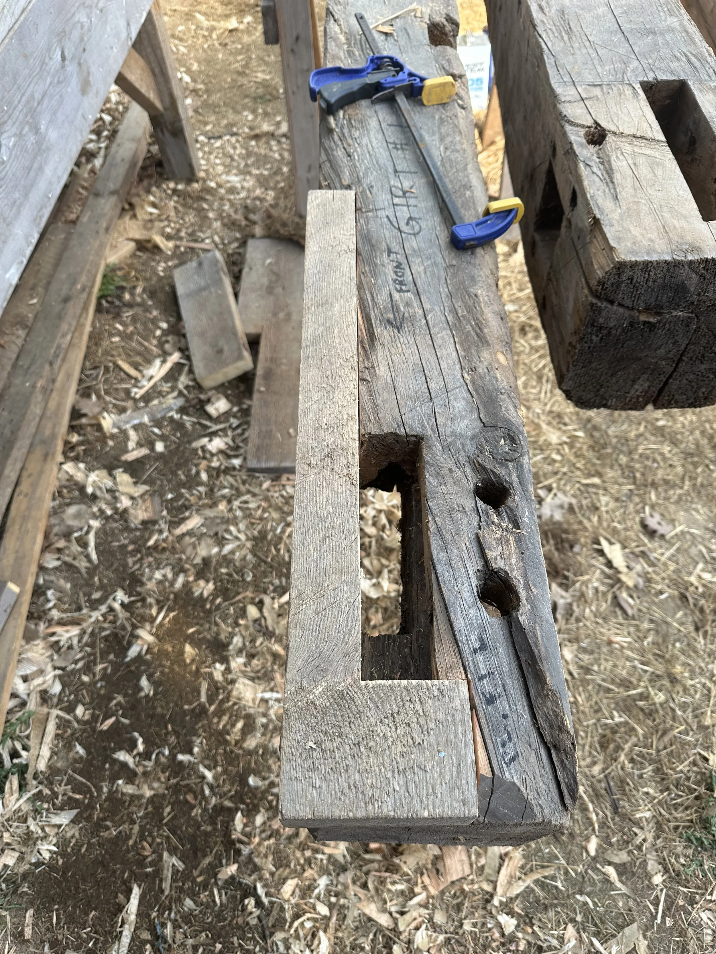 Historic buildings repair work, dependent on assessment of needs, utilizing historic methodologies. Examples include in-situ repairs both structural and cosmetic, member replacements, full deconstruction and reconstruction, and more.